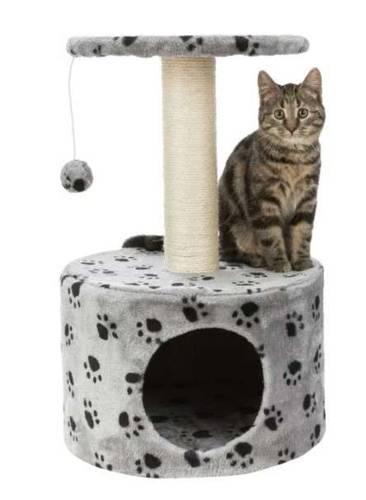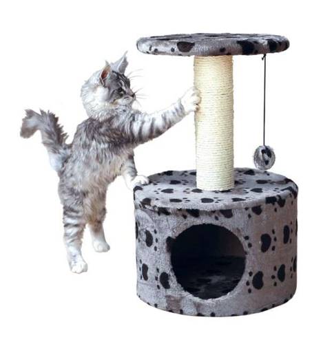 Trixie drapak Toledo szary w łapki to doskonała zabawka i legowisko w jednym urządzeniu. Zapewnij swojemu kotu wszystko czego potrzebuje, przy wykorzystaniu jak najmniejszej powierzchni swojego mieszkania. Legowisko jest wyłożone pluszem i posiada pluszowe obicie. Posiada zabawkę na sznurku. Słupek owinięty naturalnym sizalem. Na długie godziny zajmie Twojego kota. Każdy kotek powinien mieć drapak, który zachęca go do zabawy i zapewnia tym samym odpowiednią rozrywkę.