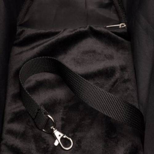 - Krótka smycz z karabińczykiem: zatrzyma psa, gdyby niepostrzeżenie chciał wyskoczyć z transportera.