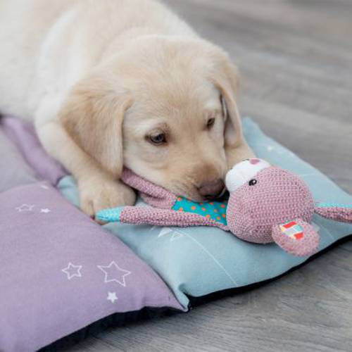 Miękko wyściełana, cudownie przytulna, a przy tym niezwykle dekoracyjna: Mata do leżenia Trixie Junior Patchwork to wygodne miejsce do odpoczynku i spania dla szczeniąt i małych psów. Składa się z pikowanych pól w żywych kolorach lilii, mięty i różu, które dodatkowo ozdobione są uroczymi nadrukami.