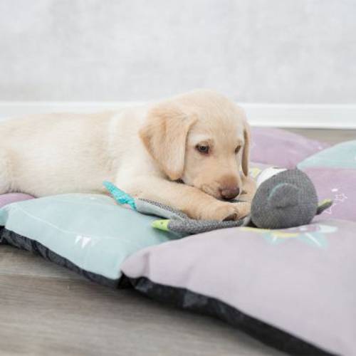 Poduszka dla psa posiada miękkie wypełnienie, które chroni przed twardymi i zimnymi podłogami, dzięki czemu zapewniony jest wysoki komfort leżenia. Dzięki pikowaniu wypełnienie nie przesuwa się. Spód posiada antypoślizgowe wypustki, które utrzymują poduszkę na swoim miejscu. Aksamitna, welurowa powierzchnia maty Trixie Junior Patchwork zachęca do wtulania się w nią.