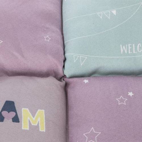 Grubo wyściełana poduszka-przytulanka z patchworkowym wzorem dla szczeniąt i małych psów, aksamitna powierzchnia, bardzo wygodna do leżenia, antypoślizgowy spód, kolor: liliowy / miętowy / różowy