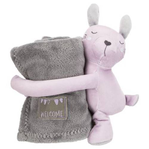 Przytulny komplet: kocyk i pluszowy króliczek, idealny jako prezent dla szczeniąt, koc można prać w wyższej temperaturze, odpowiedni dla alergików, królik ma głos i haftowaną buzię, z poliestru