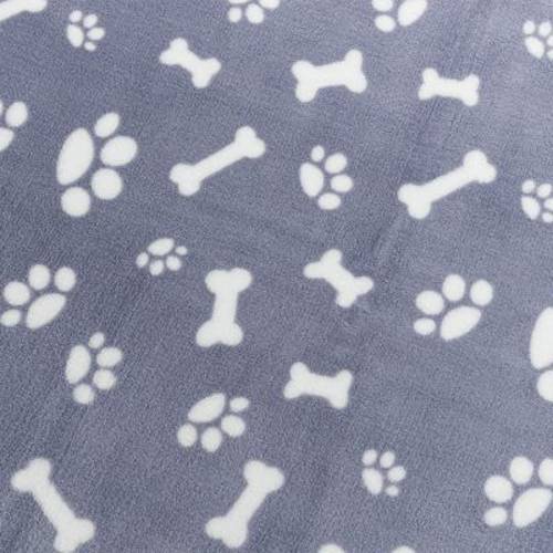 Przytulny kocyk dla psa, można prać w temperaturze do 60°C, aby niszczyć roztocza, idealny dla alergików, może być używany obustronnie, urocze motywy łapek i kości, chroni meble