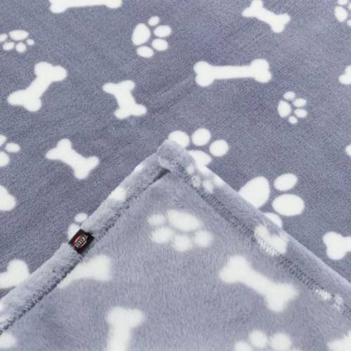 Przytulny kocyk dla psa, można prać w temperaturze do 60°C, aby niszczyć roztocza, idealny dla alergików, może być używany obustronnie, urocze motywy łapek i kości, chroni mebleJako nakrycie na sofę lub jako przytulna podkładka w koszyku Twojego pupila: koc Trixie Kenny jest wszechstronny. Akcesori…