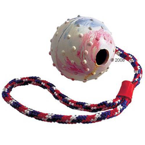 Piłka przymocowana jest do 30 cm sznurka, który zakończony jest uchwytem-pętelką. W ten sposób możesz jeszcze lepiej kontrolować zabawę. Ciągnięcie, szarpanie czy po prostu aportowanie piłki - wszystko to sprawi wielką frajdę Twojemu podopiecznemu.Kolor dostarczonego produktu może odbiegać od przedstawionego na zdjęciu.
