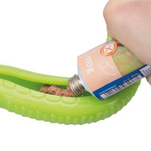 Czy Twój pies odważy się użyć tej zabawki? Snack-Snake od Trixie ma kształt węża i jest zielona - więc odrobina egzotycznej fauny wkracza do twoich czterech ścian. Gdy zabawka zostanie tylko wypełniona smakołykami, nawet najbardziej ostrożny pies rzuci się z ciekawością na nowego towarzysza zabaw.Węża można szeroko otworzyć, dzięki czemu można go łatwo wypełnić przekąskami i pastami. Wnętrze jest gładkie, co ułatwia czyszczenie po użyciu. Na zewnątrz powierzchnia jest strukturalna i ma piękny wzór łuski, dzięki czemu pies może dobrze chwytać zabawkę zębami. Snake Trixie jest wykonany z TPR (termoplastycznej gumy), elastycznego i przyjaznego dla zębów materiału. Piszczałka wbudowana w główkę zapewnia jeszcze większą frajdę.