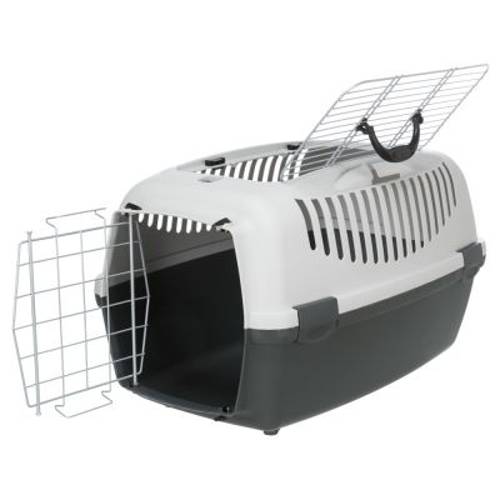 Transporter dla kotów i małych psów do 12 kilo, otwarcie z przodu i na górze, metalowa krata na górze: dł. 38,2 x 16,6 cm, urządzenie mocujące w zestawie
