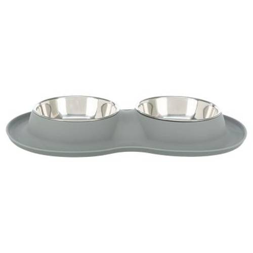 Zestaw misek na karmę i wodę, antypoślizgowy spód dzięki silikonowym nasadkom, 2 miski ze stali nierdzewnej, z uchwytem, łatwe do czyszczeniu, można myć w zmywarce, kolor: szary Praktyczny zestaw Trixie składa się z dwóch misek na karmę i wodę. Miski mają antypoślizgową podstawę, dzięki czemu zawsz…