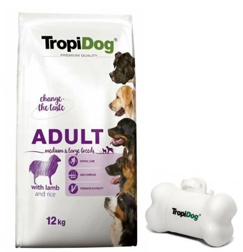 TropiDog Premium Adult M L Lamb Rice 12kg + Woreczki GRATIS
