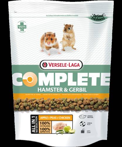 Versele-Laga Complete Hamster & Gerbil to żywienie bez zmartwień. Niezwykle smaczne ekstrudaty przygotowane wg koncepcji "wszystko w jednym" zapobiegają selektywnemu pobieraniu pokarmu. Dzięki temu Twój chomik albo myszkoskoczek otrzymuje wszystkie niezbędne substancje odżywcze pozwalające mu cieszyć się pełnią zdrowia. Pokarm zawierający kurczaka, jako naturalne źródło zwierzęcych protein oraz zboża dające energię i witalność dostosowany jest do potrzeb żywieniowych chomików i myszkoskoczków. Versele-Laga Complete Hamster & Gerbil został przygotowany przez lekarzy weterynarii w oparciu o zaawansowane badania.