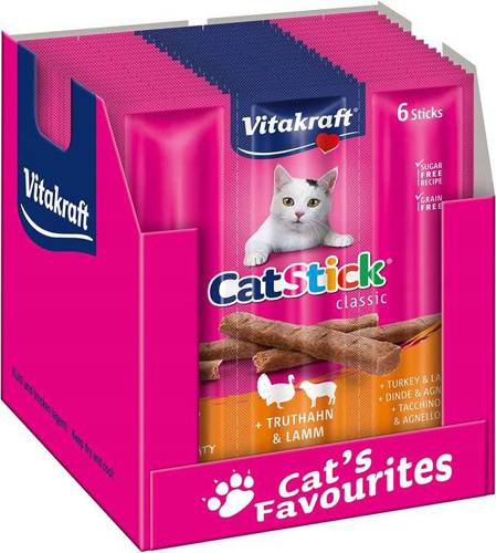 Vitakraft Cat Stick Mini Indyk i Jagnięcina 20x3szt. Kultowe już kabanosy dla kota od Vitakraft to idealna przekąska między posiłkami dla Twojego pupila. Każdy kabanos można podzielić na mniejsze kąski dzięki czemu smakołyki starczą na jeszcze dłużej. Vitakraft Cat Stick zawierają aż 95% mięsa, nie…