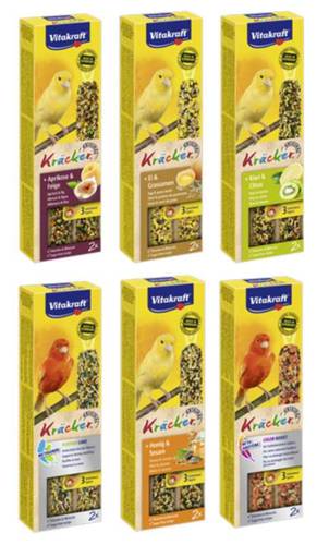 Zestaw zawiera: 1x Vitakraft Kracker figa i morela dla kanarka 2szt.1x Vitakraft Kracker z jajkiem dla kanarka 2szt.1x Vitakraft Kracker kiwi i cytryna dla kanarka 2szt.1x Vitakraft Kracker na pierzenie dla kanarka 2szt.1x Vitakraft Kracker miód i sezam dla kanarka 2szt.1x Vitakraft Kracker na kolo…