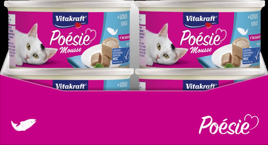 Vitakraft Poesie - kuszące smaki pysznych delikatnych musów to prawdziwy poemat dla Twojego kota. Musy Poesie zachwycą Twojego kota swoim nieodparcie pysznym smakiem oraz wyjątkowo delikatną konsystencją. Wszystkie produkty z najnowszej linii Poesie zostały idealnie dostosowane do potrzeb żywieniowych kotów oraz zostały przygotowane z najlepszych składników i unikalnej receptury bez cukru.
