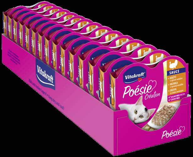 Vitakraft Poesie - kuszące smaki w pięknych tackach w kształcie serca pokażą Twojemu kotu jak bardzo go kochasz. Mięsne kawałki z indykiem w serowym sosie to wyjątkowy rarytas i prawdziwa poezja smaku. Każda tacka zawiera nieodparty smak i świeże składniki, a więc dokładnie to czego pragnie Twój kot. Ta wyjątkowa receptura została idealnie dopasowana do potrzeb żywieniowych kotów i oferuje im najwyższą jakość, którą widać już na pierwszy rzut oka.