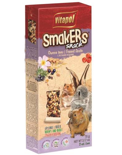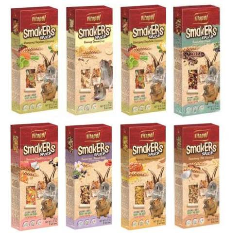 Smakers stanowi urozmaicenie i uzupełnienie diety gryzoni i królików. Jego skład został wzbogacony odżywczym pyłkiem kwiatowym przez co jest jednym z ulubionych smakołyków. Pyłek pszczeli prócz walorów smakowych i odżywczych charakteryzuje się właściwościami leczniczymi i wzmacniającymi odporność organizmu. Z powodzeniem można go podawać zarówno zdrowym jak i chorym lub osłabionym zwierzętom. Zawiera również len, który dobrze wpływa na przewód pokarmowy poprzez regulacje trawienia.