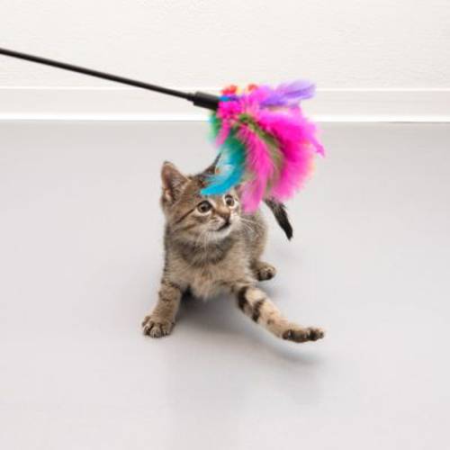 Wędka dla kota z kolorowymi piórkami w skrócie: