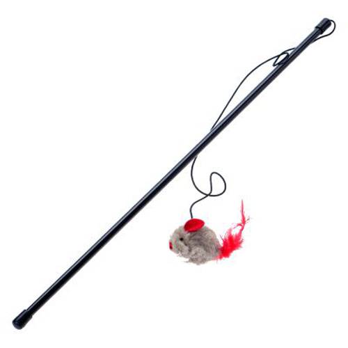 Wędka do zabawy, wraz z przymocowaną myszką na sznurku wydającą dźwięk, długość ok. 50 cmWewnątrz myszy znajduje się specjalny Chip, generujący dźwięk. Już przy najmniejszym dotyku rozbrzmiewa odgłos imitujący prawdziwą mysz, który zachęca Twojego kota do zabawy. Myszka jest przymocowana do elasty…