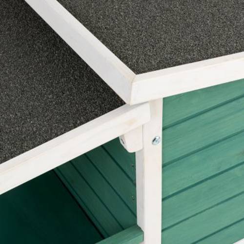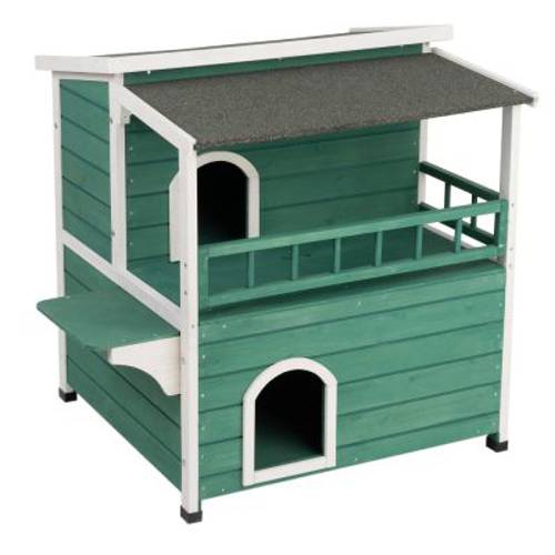 Atmosfera rodem z południowych stanów USA w Twoim ogrodzie, na Twoim balkonie lub w Twoim mieszaniu: polakierowana na zielony i biały kolor fasada, prostoliniowa, dwupiętrowa konstrukcja i weranda sprawiają, że prezentowany domek dla zwierząt przypomina urocze drewniane domki charakterystyczne dla architektury stanu Missisipi. Zmniejszony do rozmiarów, które zapewnią Twojemu pupilowi dobre samopoczucie, domek stanowi przytulną kryjówkę. W obu kryjówkach Twój pupil może spokojnie wypocząć i bezpiecznie uciąć sobie drzemkę. Odporna na działanie warunków atmosferycznych weranda na piętrze stanowi idealny punkt obserwacyjny, miejsce do wygrzewania się na słońcu i do leniuchowania.