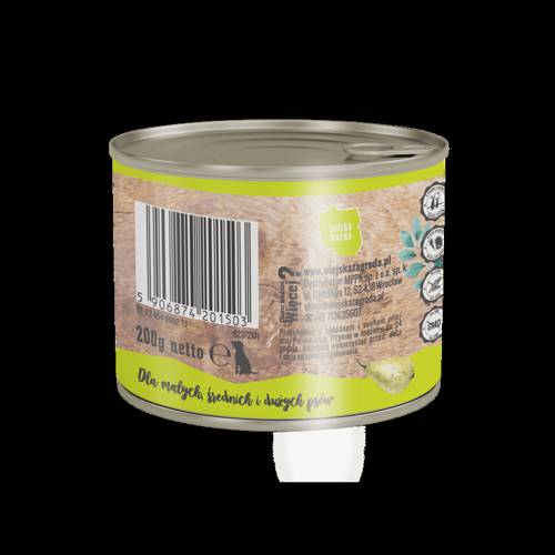 Karma mokra Wiejska Zagroda to pełnowartościowy, zdrowy posiłek dla psa, niezależnie od tego, czy jest mały, duży, kudłaty czy krótkowłosy. Pies to mięsożerca, a my zadbaliśmy, by w naszym menu znalazło się tylko to, co najlepsze.