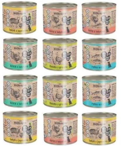 Wiejska zagroda mokra karma MIX dla psa 12x200g Karma pełnoporcjowa dla psów Wiejska Zagroda ZESTAW ZAWIERA: Wiejska Zagroda indyk z jagnięciną 20g x 4 Wiejska zagroda królik z indykiem 200g x3 Wiejska zagroda dorsz z indykiem 200g x3 Wiejska zagroda rybna uczta 200g x2 Karma mokra Wiejska Zagrod…