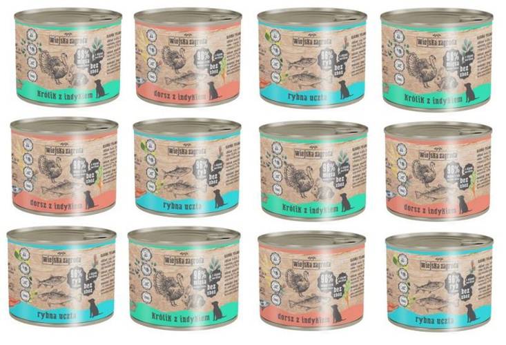 Wiejska zagroda mokra karma MIX dla psa 12x200g
