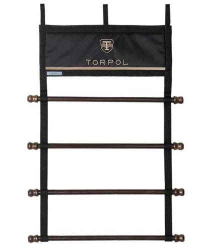 Wieszak Stajenny Torpol® Design Doskonale porządkuje przestrzeń w stajni. Dekoracyjna część wykonana została z ortalionu usztywnionego pianką poliuretanową. Wzmocniony taśmą nośną, stabilizującą drążki. Dostępny z 3 lub 4 drążkami. Materiał: ortalion (100% poliester) Wykończenie: taśma nośn…