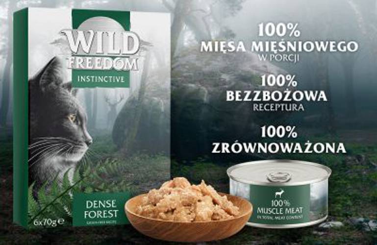 Twój kot czyha, aby coś upolować? Ludzie udomowili koty już dawno, ale w tych zwierzętach wciąż tkwi instynkt małego łowcy, który odziedziczyły po swoich przodkach – dzikich kotach żyjących na wolności. Podczas tworzenia serii karm Wild Freedom za punkt honoru postawiliśmy sobie wierne podążanie za głosem kociej natury i opracowaliśmy recepturę, która bazuje na pierwotnych nawykach żywieniowych dzikich kotów. Właśnie dlatego Wild Freedom Instinctive składa się wyłącznie z mięsa i bulionu.