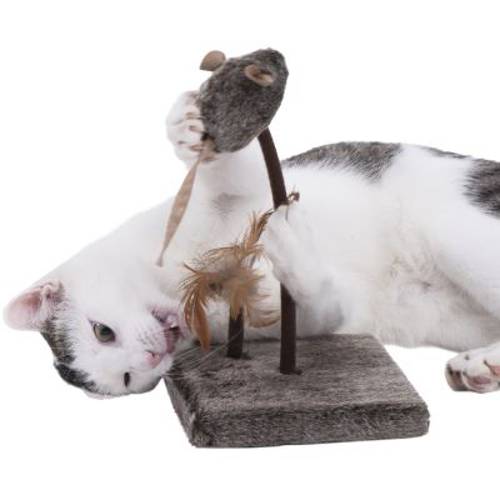 Druga mysz i wędka są przymocowane do platformy za pomocą metalowych sprężyn, które są również obite miękkim materiałem. To sprawia, że podczas zabawy skaczą dziko na wszystkie strony.