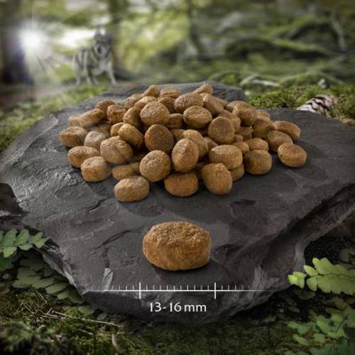 Bezzbożowa karma sucha jakości premium zapewniająca naturalne odżywienie, zawiera 61% mięsa drobiowego i wartościowego jelenia udoskonalonego owocami leśnymi, korzeniami i dzikimi ziołami