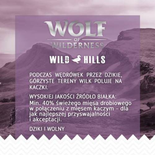 Wolf of Wilderness Adult „Wild Hills”, kaczka 5 kg