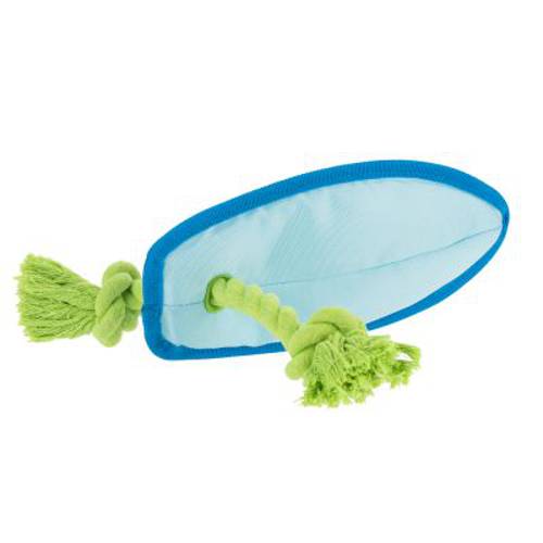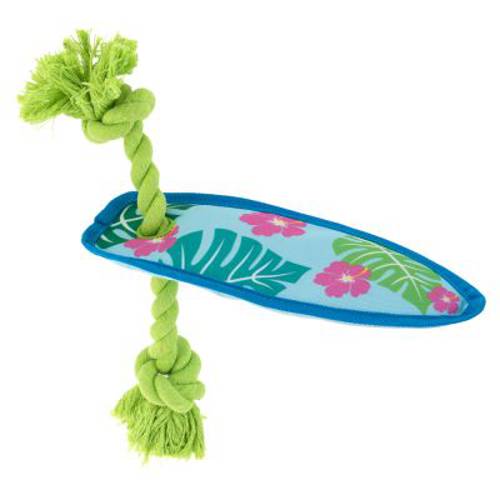 Zabawka idealna na gorące dni! Twój pies pokocha te chwile orzeźwienia, gdy będzie mógł wyłowić z wody deskę surfingową California. Deska wykonana jest z trwałego, unoszącego się na wodzie materiału, posiada też pobudzającą do zabawy piszczałkę. Dzięki otworowi w desce można przeciągać solidny sznurek w górę i w dół. Zabawkę można łatwo chwycić, nadaje się do rzucania i do żucia.Jasnoniebieska deska surfingowa z tropikalnym nadrukiem zapewni zwierzęciu dobry humor i wiele radości podczas zabaw w przydomowej Kaliforni!