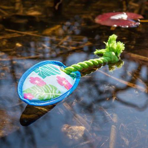 Wodna zabawka dla psa, deska surfingowa z tropikalnym nadrukiem, ze sznurkiem i piszczałką, do rzucania, aportowania i przeciągania, z trwałego poliestru z ciekawym nadrukiem, unosząca się na wodzie