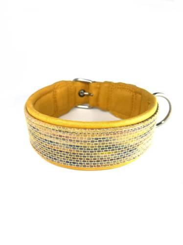 Piękny żółty kolor idealnie współgra z delikatnym kolorowym wzorem na górze obroży.