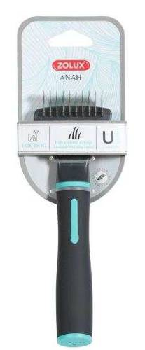 Grzebień ANAH delikatnie usuwa i rozluźnia małe węzełki powstające na sierści. Jednocześnie wygładza górną i dolną warstwę sierści. Rozczesuje i zmiękcza włosy psa. Zaokrąglone końcówki są delikatne dla sierści psa i są bezpieczne zarówno dla zwierzęcia, jak i użytkownika. Grzebień nadaje się szczególnie do długiej i gęstej sierści.