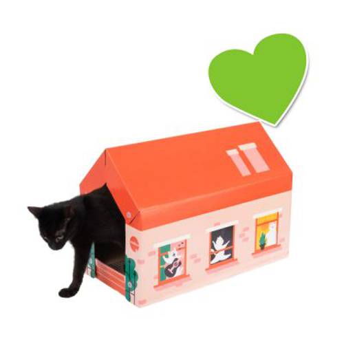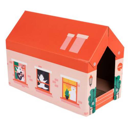zoolove pomaga! 10% wartości sprzedaży netto przekazywane jest organizacjom działającym na rzecz zwierząt! Stabilny domek z kartonu, w projekcie zimowym z matą do drapania z tektury falistej i kocimiętką
