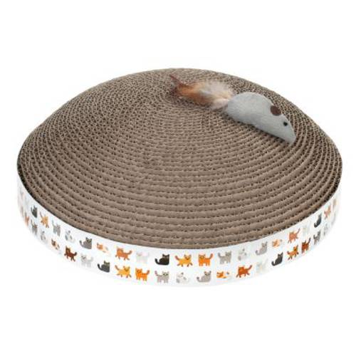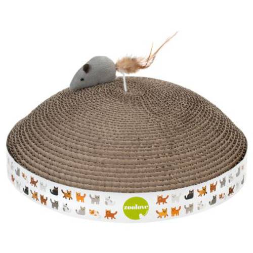 Prezentowany kopiec do drapania dla kotów został wykonany z wytrzymałej, bardzo trwałej tektury falistej, którą można w przyjazny środowisku sposób zutylizować w koszu na odpady papierowe. Pazury nie wbijają się zbyt głęboko w materiał, co przyczynia się do wyjątkowej trwałości drapaka. Na szczycie kopca znajduje się mała niespodzianka – urocza zabawkowa myszka z ogonem z piór, która zachęca kota do zabawy. Drapak w kształcie kopca marki zoolove z pewnością przypadnie Twojemu pupilowi do gustu, ponieważ większość kotów świetnie akceptuje tekturę falistą.