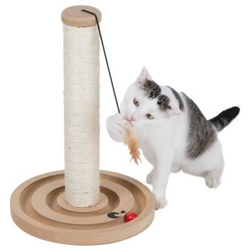 Solidny drapak zoolove Scratch & Play to wspaniała zabawka ze świetnymi elementami dodatkowymi, które zapewnią Twojemu kotu niezliczone godziny zabawy! Słupek pokryty wytrzymałym sizalem umożliwia ostrzenie pazurów i rozciąganie się do woli.W podstawie drapaka znajduje się żłobienie, w którym umieszczone są dwie drewniane kulki doskonale pobudzające Twojego pupila do zabawy. Ponadto z czubka drapaka zwisa jeszcze jedna drewniana kulka - przyczepione do niej prawdziwe piórko sprawi, że Twój kot zapomni co to nuda!