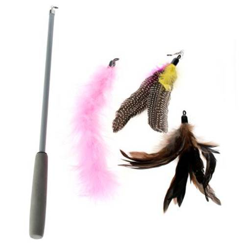 Z wędką dla kota zoolove 3 w 1 wzbudzisz w swoim kocie instynkt łowcy i zachęcisz do zabawy – trzy wymienne kolorowe zawieszki z naturalnych piór prowokują kotka do dzikich harców. Zapewniają także różnorodność i dostarczają coraz to nowych wyzwań, dzięki czemu zabawa szybko się nie znudzi. Poprzez zabawę wędka sprzyja także rozwojowi koncentracji i rozwojowi fizycznemu Twojego kota.Rozsuwany do długości 112 cm metalowy kij jest wyjątkowo stabilny, a dzięki gumowemu uchwytowi wygodnie trzyma się go w dłoni. Z jego pomocą z łatwością wprawisz zawieszki w powietrzny taniec, imitujący lot potencjalnej „zdobyczy”. Wspaniała zabawa dla każdego kota!