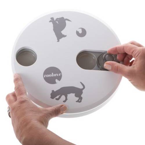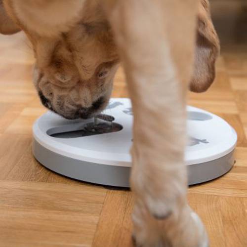 W dolnej części zabawki znajduje się 6 skrytek, które można wypełnić smakołykami. Podczas obracania pokrywy, znajdującej się nad skrytkami, przesuwają się także otwory w pokrywie, ukazując znajdujące się w skrytkach smakołyki. Pies może obrócić pokrywę pyskiem lub łapami, zapewniając sobie łatwe dojście do przysmaków. Już od samego początku Twój pupil będzie odczuwał ogromną satysfakcję, odkrywając w każdej skrytce niespodziankę.